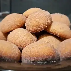 Areias de Cascais (lit.'areias from Cascais') or simply areias.[1] The traditional recipe calls for dough made of flour mixed with lard (or butter), rolled into balls the size of walnuts, that is baked without the use of a leavening agent.[2] The biscuits are then coated in coarse-grain sugar. Some modern recipes optionally use lemon zest or vanilla,[3] or incorporate ground almonds and glacé cherries.[4] Because of the simplicity of recipe, variations exists throughout Portugal.[5][6]