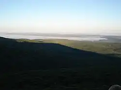 A segment of 20.4 miles (32.8 km) winds from Havana north through the Ozark National Forest to an area south of Paris.[7] The route passes by Mount Magazine, which at 2,753 feet (839 m) is Arkansas's highest point.[8] Recreation areas include Cove Lake and Mt. Magazine Recreation Areas, with views of Blue Mountain Lake available from an overlook.[9] Many current camp sites are former home sites that were bought by the government during the depression.