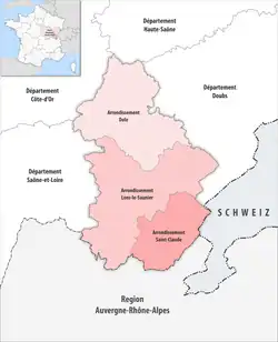 - ^ "Arrêté n°17-08 BAG portant modification des limites territoriales des arrondissements du département du JURA, 7 January 2017" (PDF). pp. 92–95. Retrieved 2021-04-05.
