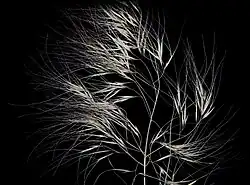 Aristida is a very nearly cosmopolitan genus of plants in the grass family.[4][5] Aristida is distinguished by having three awns (bristles) on each lemma of each floret.[6] The genus includes about 300 species found worldwide, often in arid warm regions. This genus is among those colloquially called three-awns wiregrasses, speargrasses and needlegrasses.[7][8][9] The name Aristida is derived from the Latin "arista", meaning "awn".[10]