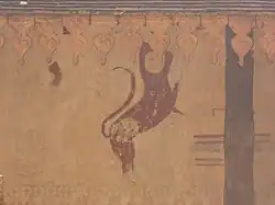 The devalaya consists of a Pilimageya (Shrine room), kitchen, Sinhasanaya (Chamber of Throne) and the abode of priest. The roof of the devalaya is supported on carved timber columns and the outside of the walls are adorned with Kandyan era paintings. The Sinhasanaya which was used by kings to watch the processions, is situated at the front of the devalaya. The wood carvings of the Sinhasanaya are reported to be similar to the carvings at Embekka Devalaya.[6]