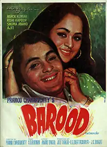 Barood (transl. Gunpowder) is a 1976 Indian Hindi-language action crime film directed by Pramod Chakravorty, with screenplay by Sachin Bhowmick and dialogues by Ahsan Rizvi.[1] It stars Ashok Kumar, Rishi Kapoor, Shoma Anand, Ajit and Reena Roy in leading roles, with Dharmendra and Hema Malini in guest appearances. The film was shot in several foreign locations, including Las Vegas, New York, Paris, Madrid and Geneva.[2]