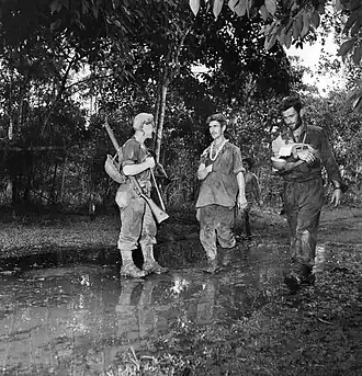 The fighting around Oivi and Gorari was the last major battle of the Kokoda Track campaign, although it did not end the fighting in the area.[24][25] The wire bridge at Wairopi had been destroyed in an earlier Allied bombing raid, and so over the period 13 to 15 November, Australian engineers worked to establish crossing points, constructing several makeshift means including flying foxes and a narrow footbridge, enabling a small bridgehead to be established with one company at first. Due to limited engineering stores, the crossing proved slow and it was not until 15 November that the 25th Brigade had completed its crossing, allowing the 16th to follow them up. Meanwhile, patrols had been undertaken searching for isolated pockets of Japanese on the western side of the river, while reinforcements in the shape of the ad hoc Chaforce, consisting of one company from each battalion of the 21st Brigade, began arriving to reinforce the 25th Brigade. Late on 16 November, the Australians had completed their crossing, and the pursuit of the withdrawing Japanese forces continued.[26] The surviving Japanese from the Kokoda campaign subsequently gathered at the mouth of the Kumusi, joining up with Japanese reinforcements that were landed there in early December.[27] The months that followed saw heavy fighting on the northern coast of Papua, around Buna and Gona, as the Allies undertook a costly frontal assault against the Japanese beachheads, which had been heavily fortified.[28]