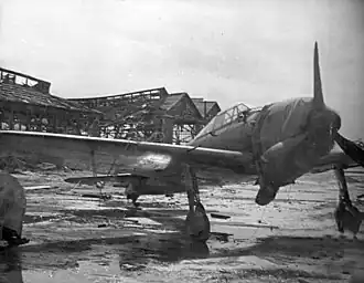A captured Mitsubishi A6M5 Zero fighter at a Japanese airfield on Saipan.