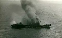 Italian tanker Minatitlán on fire and sinking at dawn, 9 November 1941 | |||||||
