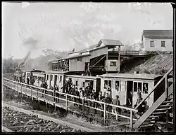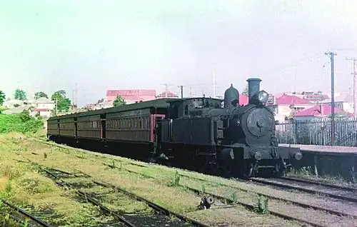 For the convenience of employees and others who used this train service, small raised platforms were erected at Kahibah, Burwood and Dudley, and all trains stopped regularly at these places to pick up and set down passengers. The Kahibah platform was situated 2 miles 11 chains (3.4 km) from Adamstown, Burwood platform (which served the Burwood Colliery and later as a transfer station to persons travelling to and from the Redhead line) was 5 miles 2 chains (8.1 km) from Adamstown, and Dudley was about 14 mile (400 m) short of the colliery. Dudley platform was opened on 14 January 1900, all the other platforms were opened with the commencement of the passenger service. The trains left Newcastle daily (Sundays excepted) at 5.55 a.m., and 1.55 p.m., returning from Dudley on the same days at 3.20, and 11.20 p.m., the time of journey between Newcastle and Dudley being 40 minutes. These trains were worked usually by an E17 class engine hauling either six or eight 4-wheel and 6-wheel old time carriages, and a brake-van.[1]