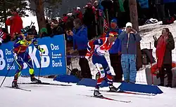 Ole Einar Bjørndalen and Martin Fourcade during the race.