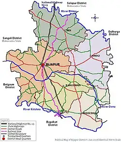 Bijapur district, officially known as Vijayapura district,[1] is a district in the state of Karnataka in India. The city of Bijapur is the headquarters of the district, and is located 530 km northwest of Bangalore. Bijapur is well known for the great monuments of historical importance built during the Adil Shahi dynasty.
