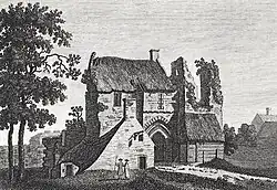 The surviving gatehouse resembles the architecture of Caerphilly Castle, which may indicate that the same master mason worked on both fortifications.[5] This would date the Palace to the time of William de Braose who became Bishop of Llandaff in 1266.[5][6] It is believed the Palace was attacked and damaged by Owain Glyndŵr in the rebellion of 1402–05, and was subsequently abandoned by the bishop of the period,[5] who moved to live at Mathern Palace in Monmouthshire; bishops did not return to live near their cathedral again until 1850. The Bishops Palace was intact in 1610 when it was shown in a plan by John Speed, but was probably destroyed during the English Civil War.[7]