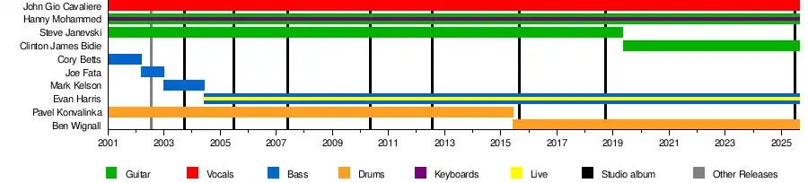 The band was formed in Melbourne in 2001 under the name Kymera. Guitarist Steve Janevski was drawn from Cyclone Tracy, a long-running heavy rock/hair metal outfit. Bassist Cory Betts was a member of Pegazus, a Melbourne power metal band that had toured Europe in 1998, although he did not join that band until early 1999. Kymera's other guitarist Hanny Mohammed had recorded an album with a band called Catwitch who had been featured on a television documentary. The band dropped the Kymera moniker due to a US band sharing the same name. After a flirtation with the name Arkaya, the band began recording material but Betts then left and the group renamed itself Black Majesty.