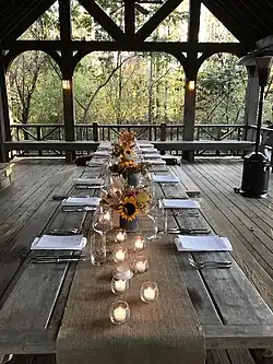 The grounds cover 4,200 acres (1,700 ha), and the resort has 62 rooms.[8] Blackberry Farm hosts culinary, musical and outdoor sporting activities and events on and off property.[9] The property includes a timberframe barn from Pennsylvania, a dining and entertainment venue, a spa, an events hall, and guest cottages.