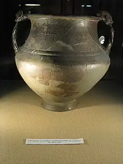 Celtic pot with anthropomorphic handles from Blandiana. On display at the National Museum of the Union, Alba Iulia.