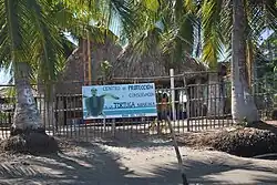 The Boca del Cielo turtle sanctuary is one of four such installations on the Chiapas coast along with Puerto Arista, Costa Azul and Barra de Zacapulco.[2] It is run by the Instituto de Historia Natural y Ecología. Despite a federal ban on the sale and consumption of the eggs, the pillaging of turtle nests continues in Chiapas.[9] It is staffed by two persons who patrol the 75 km of beaches and mangroves nightly for freshly laid eggs.[2][9] These eggs are moved to a protected hatching area and them the hatchlings emerge, are released into the sea. Visitors are permitted to participate in patrols and releases, with July to November the most active months.[2]