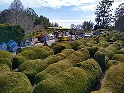 A hedge maze at Tasmazia, with Lower Crackpot in the background