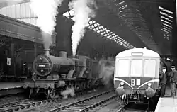 Trains on the Bristol and South Wales Union and the Midland routes operated from the terminal platforms, while the GWR used the new through platforms.[6] The capital costs of the new work were split 4/14 GWR/B&ER and 10/14 MR, and operating costs were split GWR 3/8, MR 3/8 and B&ER 2/8. Hence, when the GWR absorbed the B&ER in 1876 the split became GWR 5/8 and MR (later LMS) 3/8, until nationalisation on 1 January 1948.[15]
