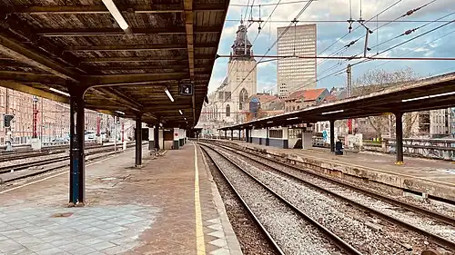 Brussels-Chapel railway station (French: Gare de Bruxelles-Chapelle; Dutch: Station Brussel-Kapellekerk)[a] is a railway station on the North–South connection in the City of Brussels, Belgium. Despite its city centre location and the busy passing railway line, few trains stop there nowadays. The train services are operated by the National Railway Company of Belgium (SNCB/NMBS).