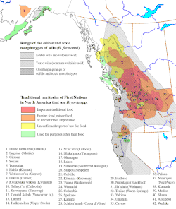 45. ^ Compton, B. D. 1993. Upper North Wakashan and Southern Tsimshian Ethnobotany: The Knowledge and Usage of Plants and Fungi among the Oweekeno, Hanaksiala (Kitlope and Kemano), Haisla (Kitamaat) and Kitasoo Peoples of the Central and North Coasts of British Columbia. Ph.D. thesis, University of British Columbia, Vancouver, British Columbia, Canada