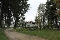 Bănilă pe Siret (German: Augustendorf), a locality in northern Bukovina previously inhabited by Bukovina Germans. The photograph depicts the manor of the Gross family in the park of the village.