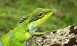 Calotes grandisquamis, the large-scaled forest lizard, is an arboreal, diurnal, insectivorous agamid lizard found in the evergreen rainforests of the Western Ghats of India; distributed from Agumbe to Agasthyamalai Hills.