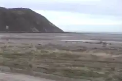 Cape San Pablo is an isolated mountain with a rounded shape. It is made of sedimentary rocks from the Cenozoic Era. The cape spreads across 1,200 metres at hide tide, but the distance decreases significantly at low tide. To the north, there is a bay called “Quemada” (English: Burned) together with another one much deeper bay named cove "San Pablo", which is delimited at the north by the cape "Ladrillero" and the "Champion rock" in the same area where the river "Ladrillero" flows into the sea. Cape San Pablo has another sea entrance to the south that exposes the seabed at low tide. This area contains a huge wreck, the "Desdemona", a cargo ship made in Germany. In this shallow bay, the San Pablo river flows into the sea. The southern limit of this area is called Gruesa point.[1] The climate is semi-humid, with an annual average temperature of about 6 °C, and annual rainfall (uniformly distributed) of about 350 mm. In the Papadakis classification, its climate is defined as “wet Patagonian”.[2] Strong winds occurs throughout the year, especially during the spring, blowing mainly from the west and south-west quadrants. The coast is usually cliffed but it is also surrounded by lower coastal areas which consist of sand, silt and abundant pebbles. Tidal differences can be remarkable.