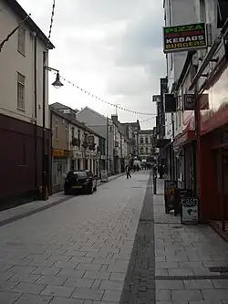 Charles Street, named after the landowner (and twice Cardiff mayor) Charles Vachell, was originally built in the 1840s as luxury housing.[8] When Cardiff's new drainage was being devised, in 1849, Charles Street was described as Cardiff's "principal street".[11] It joins the north side of Queen Street about halfway along its length. The street became more commercial later in the 1800s. In the 1970s it became the home of the Welsh Arts Council's Oriel gallery.[8] It is also the location of St Davids Catholic Cathedral.