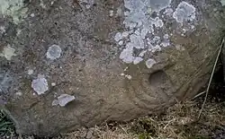 Ardestie earthhouse was discovered in the 1940s to the north of Mains of Ardestie farm.[1] It was excavated in 1949–1950 by F.T. Wainwright, who first suggested that the function of the souterrain was as an underground cow byre, although grain storage and ritual use have also been suggested.[2] Incorporated into the structure are recycled stones with Neolithic/Bronze Age cup and ring marks