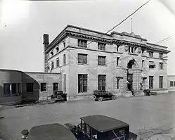 The station was completed the same year the deadly Regina Cyclone struck the city, tearing through Wascana Park and gutting part of the downtown area. The building underwent a major expansion in 1931, and the original façade was redone in a simpler Art Deco style with Tyndall stone. As well, terrazzo floors, marble support columns and plaster moulded ceilings were added to the interior.[1]