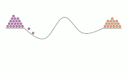 Surface binding energy oscillation also occurs to different extent with the various chemical surface species as defined by the γi-j parameter. For any non-unity γi-j system, the asymmetry in the surface energy profile results in conducting work to bias the reaction to a steady state away from equilibrium.[10] Similar to the controlled directionality of molecular machines, the resulting ratchet (device) energy mechanism selectively moves molecules through a catalytic reaction against a free energy gradient.[11]