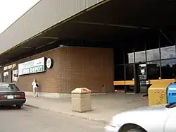 The present day City Hall had its opening ceremonies on June 23, 1956[9] October 5, 1965 was the last day the Canadian National Railway (CNR) passenger train ran through downtown Saskatoon over the old CNR bridge; it was replaced by the Idylwyld Bridge Senator Sid Buckwold Bridge on October 28, 1966. April 1, 1968 saw the official opening ceremonies of the Centennial Auditorium, and a short while later the first businesses in Midtown Plaza opened (the complete mall opened officially on July 30, 1970; it was enlarged in the 1990s. The Hudson's Bay Company building on 23rd Street East and 2nd Avenue has been converted to condominium living, and the adjacent Bayside Centre is now owned by Ashley Furniture. The Hudson's Bay Company and Sears Canada are the current anchors in the Midtown Plaza shopping mall, The Bay having replaced the now-defunct Eaton's.[10] A longtime downtown landmark, the "Skywalk" that used to connect the 23rd Street/2nd Avenue Bay store with a neighbouring parkade was demolished in the late 2000s (along with the parkade).