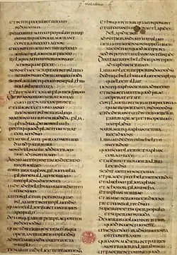 The Codex Amiatinus is the oldest manuscript with a complete text of the Vulgate. The Codex Amiatinus is described as a brilliant display of the beauty that is Early British, Pre-Carolingian calligraphy. It used as a model the (Vetus Latina) Codex Grandior of Cassiodorus, which Coelfrith had obtained in Rome.[9]