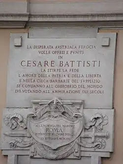 Battisti is remembered at Via Cesare Battisti, near Piazza Venezia, in Rome.