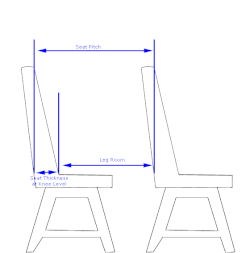 Additional anthropometric measurements may be relevant to designing a chair. Hip breadth is used for chair width and armrest width. The buttock-knee length is used to determine "leg room" between rows of chairs. "Seat pitch" is the distance between rows of seats. In some airplanes and stadiums the leg room (the seat pitch less the thickness of the seat at thigh level) is so small that it is sometimes insufficient for the average person.