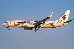 On the afternoon of 1 April 2013, China's 1000th Boeing passenger plane, registered B-5756, landed at Kunming Changshui International Airport and settled in with China Eastern Yunnan Airlines. The fuselage of the plane was painted with the purple peacock livery, and the words "1000TH BOEING AIRPLANE FOR CHINA" was specially printed on the front of the fuselage.[8]