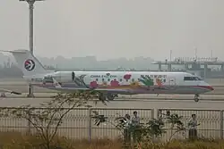 Previously, the "Green Peacock" logo representing the former China Yunnan Airlines had been added to the front of the aircraft fuselages.[7] Since 2014, China Eastern Yunnan Airlines has successively launched a new livery of China Eastern Airlines, and the original "Green Peacock" pattern has since been removed.