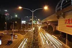 A night view of Universiade station of Shenzhen Metro.