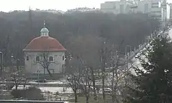 Church of Saint Roch, as viewed from Olšansky Cemetery