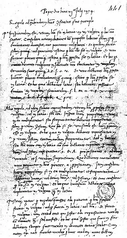 His cipher-breaking rules are applicable to dispatches with word divisions, without homophones, nulls or code words. He says nothing of polyalphabetic substitution or the existence of nomenclators. His notes were anticipated by Leon Battista Alberti in his theoretical, but more comprehensive, treatise De Cifris, which earned him the title of Father of Western Cryptology.