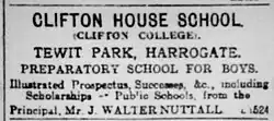 - ^ "Clifton College, Harrogate". Leeds Mercury. 22 September 1899. p. 1 col.6. Retrieved 25 October 2024 – via British Newspaper Archive.
