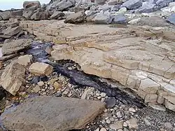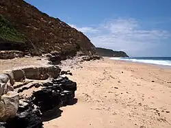 Coal seam outcrop at Bell's Point, at the northern end of Austinmer Beach. This is the coal seam noted by George Bass in 1797.