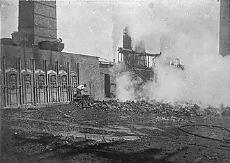 In 2013, the Coal preparation plant and some small neighboring buildings are in ruins and overgrown.[25] One of the two hoppers is still standing,[26] while the second was dynamited by the army in the 1960s and left in place.[27] The Coal preparation plant's ancillary buildings, notably the benzol vats, are in ruins, except for one part which had been converted into a dwelling and still has a roof in good condition.[28] By contrast, the large wash-house and other buildings from the same period have been demolished without trace.[28] The remains of the Coal preparation plant were cleared in early 2015.[29]