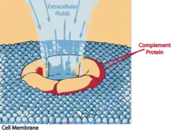 1. ^ Xie CB, Jane-Wit D, Pober JS (2020). "Complement Membrane Attack Complex: New Roles, Mechanisms of Action, and Therapeutic Targets". The American Journal of Pathology. 190 (6): 1138–1150. doi:10.1016/j.ajpath.2020.02.006. PMC 7280757. PMID 32194049.