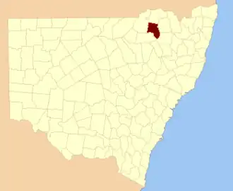 1. ^ "Courallie County". Geographical Names Register (GNR) of NSW. Geographical Names Board of New South Wales.