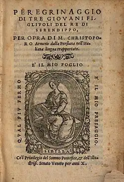 | Notable work | Peregrinaggio di tre giovani figliuoli del re di Serendippo |