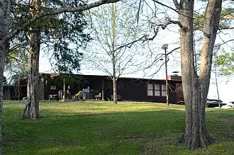 The Crocketts Bluff Hunting Lodge is a historic hunting lodge in Crocketts Bluff, Arkansas. The lodge is symbolic of the hunting industry in the Grand Prairie of Arkansas, which is known for its plentiful duck and fish. The first lodge at this site was built in 1938 by Sam Fullerton, who owned the Bradley Lumber Company. Used primarily during duck hunting season, the lodge served to entertain Fullerton's customers in the lumber industry. In 1955, the original lodge burned down, and Fullerton's grandson S. Baker Fullerton built the present lodge in 1956 using native wood. The lodge became the property of the Potlatch Lumber Company in 1958 when it bought the Bradley Lumber Company; it was later purchased by the Frank Lyon Company in 1970, which used the lodge for duck hunting and fishing.[2] On August 1, 2008, the lodge was added to the National Register of Historic Places.[1]