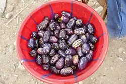 Staple foods include fish, seafood, beans, maize and cooked banana.[4][6] Tropical fruits such as pineapple, avocado and bananas are a significant component of the cuisine.[4] The use of hot spices is prominent in São Tomése cuisine.[4] Coffee is utilized in various dishes as a spice or seasoning.[4] Breakfast dishes are often reheated leftovers from the previous evening's meal.[6]