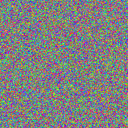 A two-dimensional cyclic cellular automaton with n = 16, for 1300 steps starting from a random initial configuration.