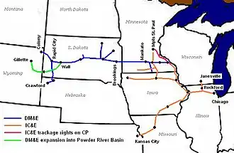 13. ^ a b Dakota, Minnesota and Eastern Railroad, DM&E/PRB/IC&E Overview. Retrieved (August 4, 2009).