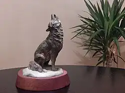 Midnight Serenade, a bronze gray wolf sculpture by Parker