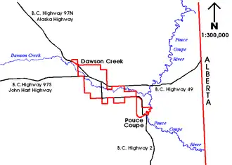 9. ^ "Culture & History: Dawson Creek". Destination BC. March 16, 2018.