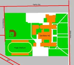 Thomas A. DeVilbiss High School was a public high school in Toledo, Ohio from 1931 to June 1991. It was part of the Toledo Public Schools, serving students from the DeVeaux, Elmhurst, Grove Patterson, Longfellow, Mayfair, McKinley, Nathan Hale, Old Orchard, and Whittier elementary schools. The building still sits at 3301 Upton Avenue near the Central Avenue intersection.
